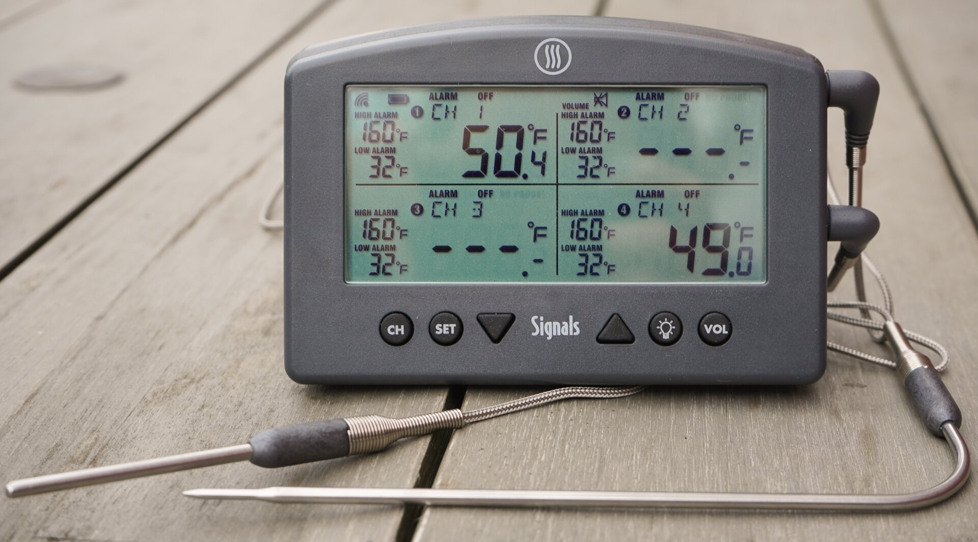 As a fan of multiple meats, I’m always checking hamburgers, steaks, and other grilled gobbets with a portable thermometer to test for doneness. Until the ThermoWorks Signals, I haven’t been able to find a product that acts as sort of a meat tender, something that will monitor multiple foods at once. It’s not a new device but this particular version is updated with wifi and Bluetooth and after preparing a few meals with it I can say it is a solid upgrade to handheld, pen-style thermometers popular with at-home grillers.