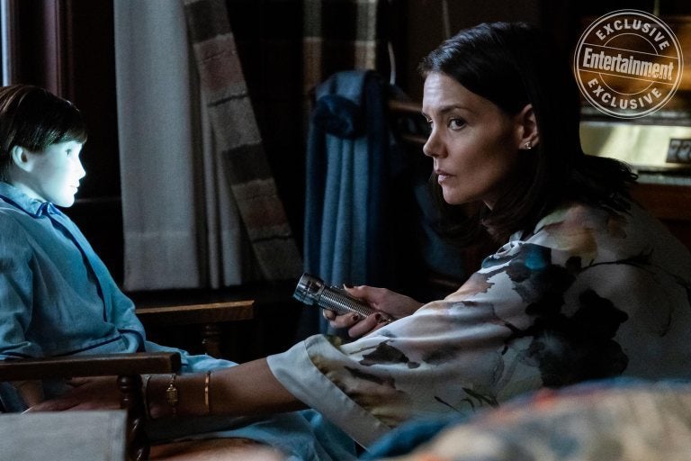 Katie Holmes can’t believe she’s in the sequel to a killer doll movie, either, in another new photo from Entertainment Weekly.