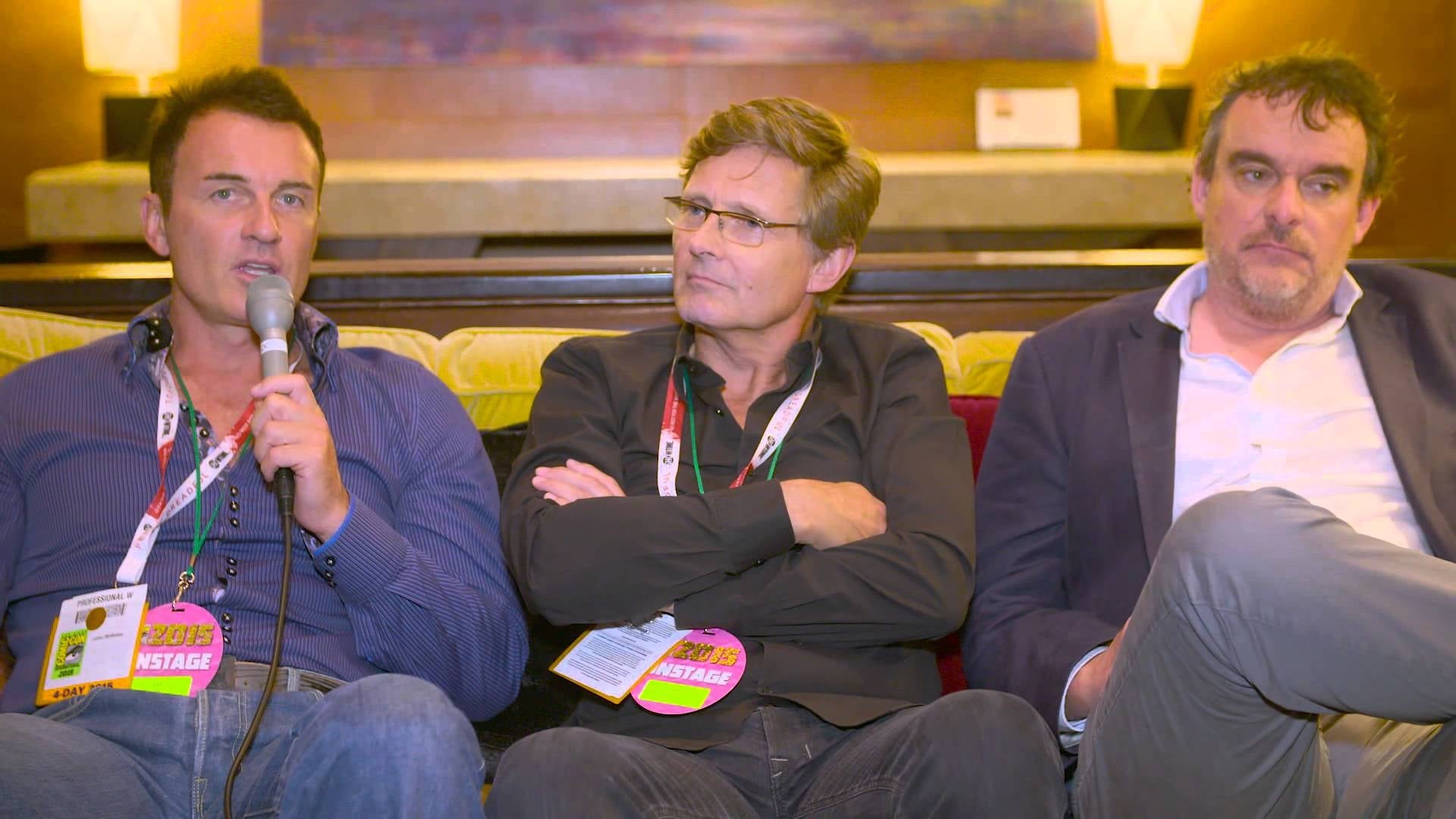 Taking great care to avoid any plot spoilers, Childhood’s End scriptwriter Matthew Graham (Life on Mars), director Nick Hurran (Doctor Who, Sherlock), and actor Julian McMahon (he’ll play Dr. Rupert Boyce in the series) sat down with us at Comic-Con to discuss the project. The interview came a few hours after the Childhood’s End panel, at which nearly every question posed by an audience member was accompanied by a declaration of love for Clarke’s book.