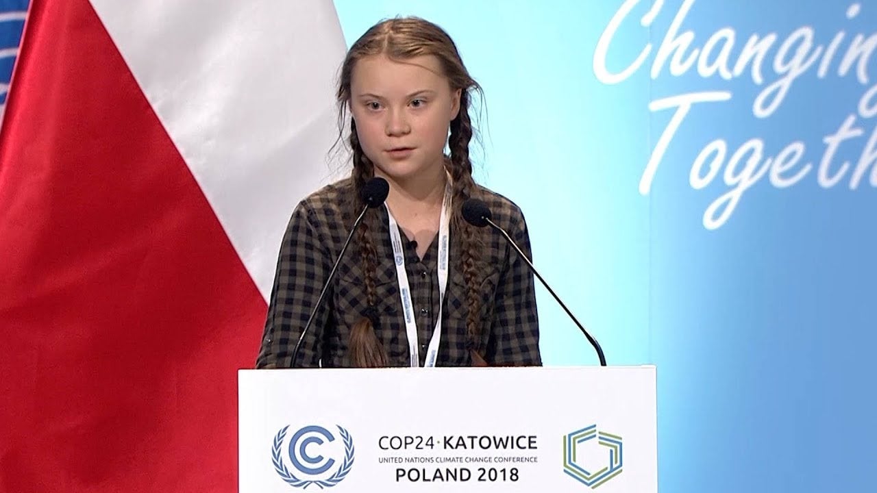 “In the year 2078, I will celebrate my 75th birthday. If I have children, maybe they will spend that day with me. Maybe they will ask me about you. Maybe they will ask why you didn’t do anything while there was still time to act. You say you love your children above all else and yet you are stealing their future in front of their very eyes. Until you start focusing on what needs to be done rather than what is politically possible, there is no hope. We cannot solve a crisis without treating it as a crisis.”