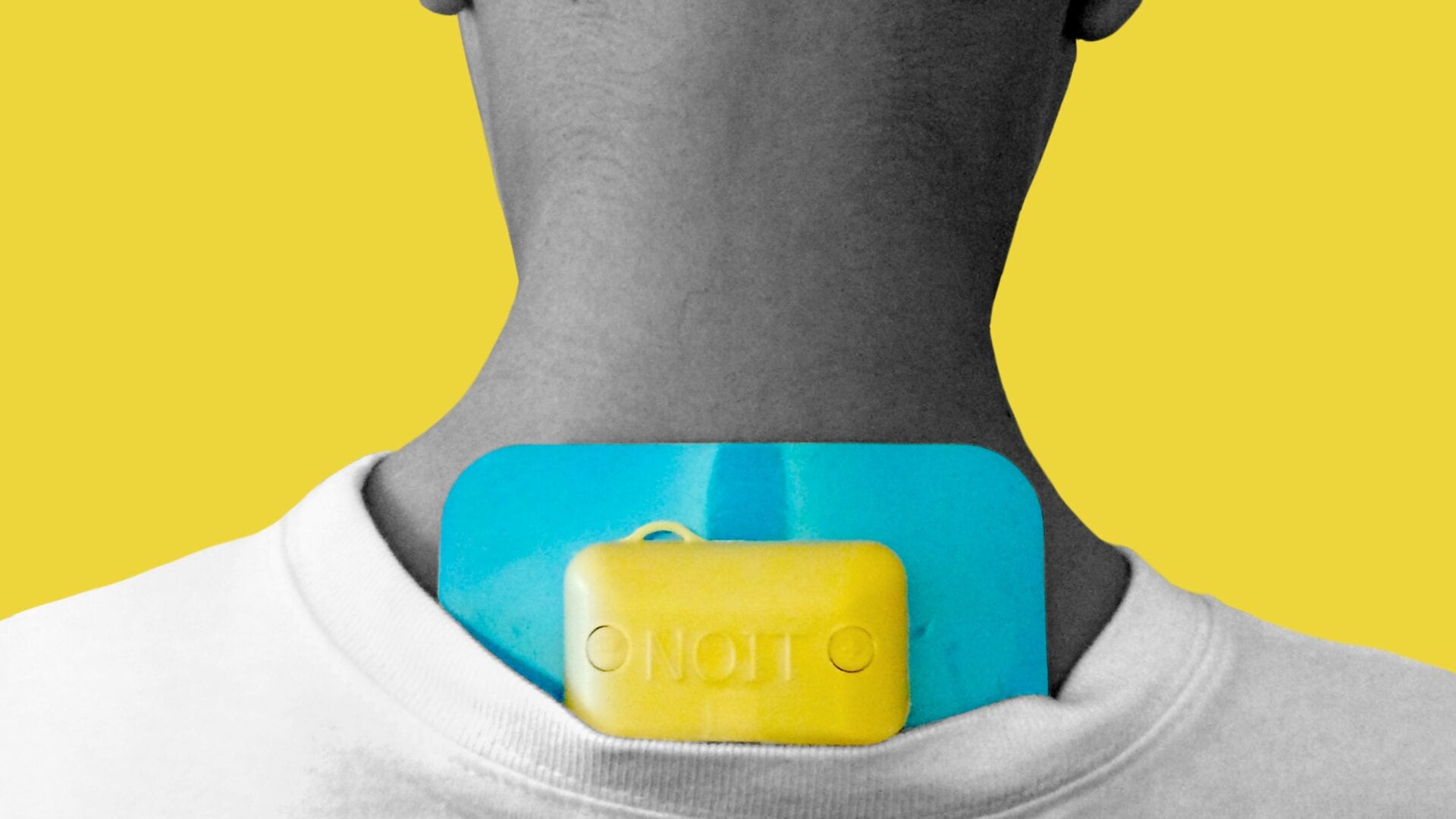 Embedded in the tweet was a link to a Kickstarter page for a wearable device called NOIT. In the main picture, you can see a patch and rectangular device plastered onto the back of a child’s neck.