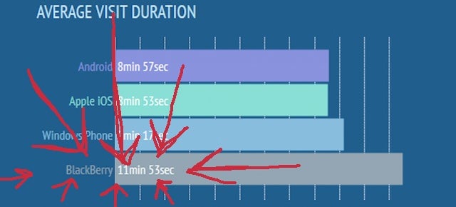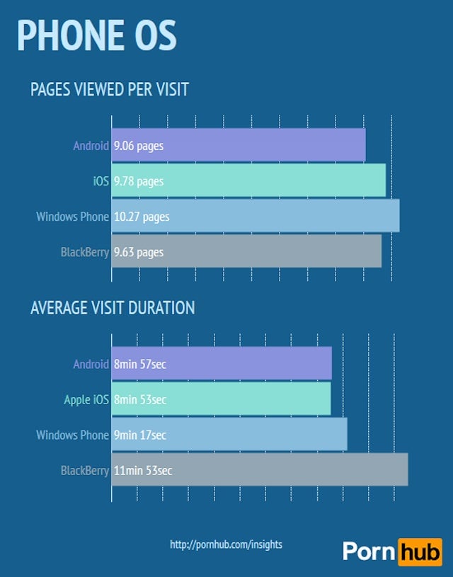 We live in a busy world, and a busy world demands mobility (aka getting our filthy movie fix on-the-go). The big four are all pretty even on pages viewed, but BlackBerry users stand out for their durability.