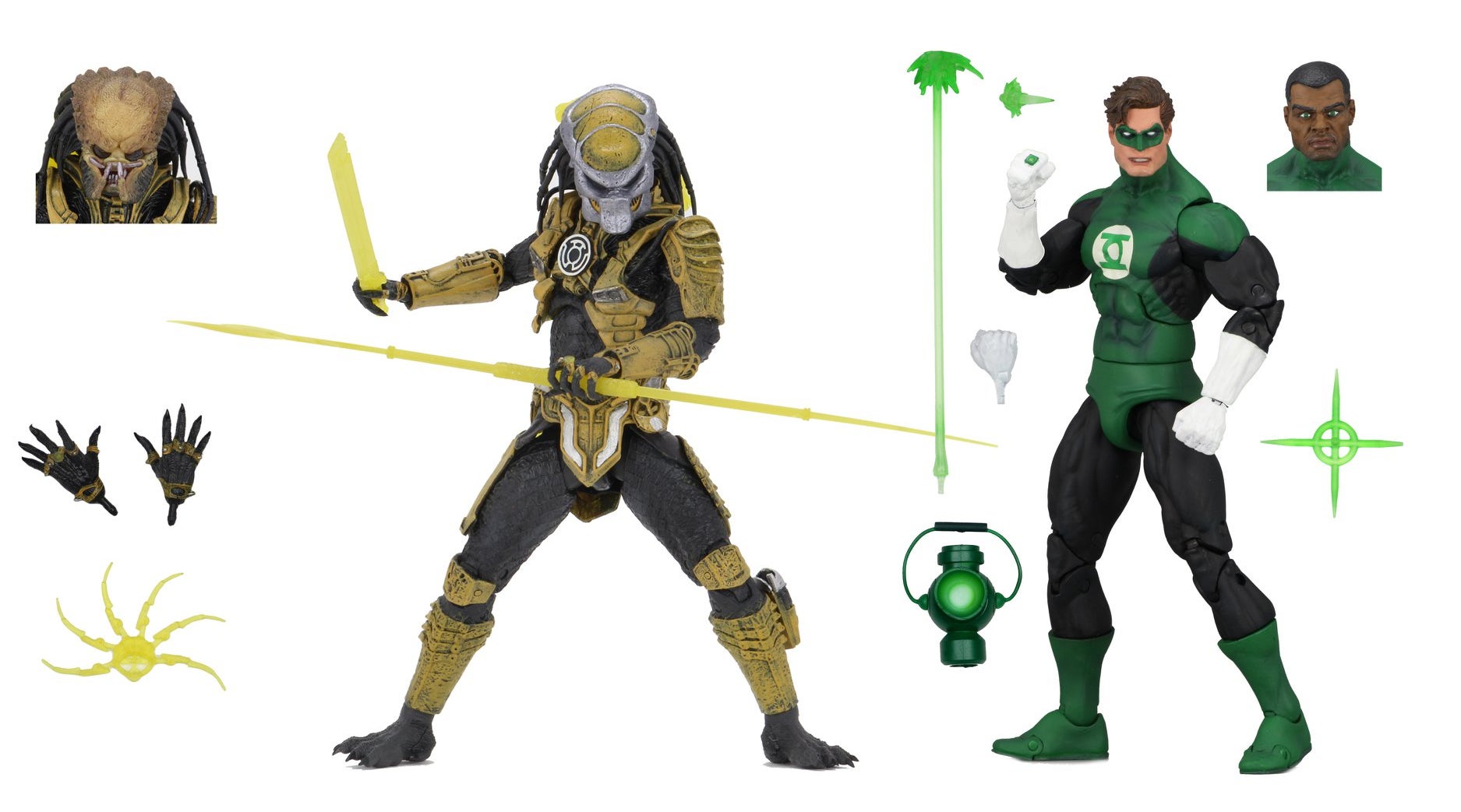 Last week, NECA revealed its first DC Comics two-pack exclusive for New York Comic-Con. Now it has its second, in the form of this matchup between Hal Jordan and a Sinestro Corps-colored Predator. Based on a 2008 storyline mashup between DC Comics and Dark Horse, the set includes parts to turn the Green Lantern figure into either Hal Jordan or John Stewart, as well as a variety of fear-and-will-powered Lantern constructs for the Predator and the Green Lanterns to wield into battle. Both NYCC two-packs will be available at the convention individually for $60, or at a later date outside of the con together as one $120 package. [Toyark]