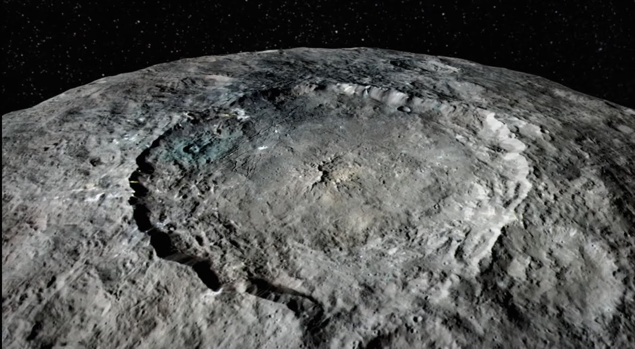 There is an unusually good look at those bright spots and how they are laid out across the geography—plus, all the different types of craters that house them. The most interesting thing may be the false color filter that NASA slapped over the whole thing.
