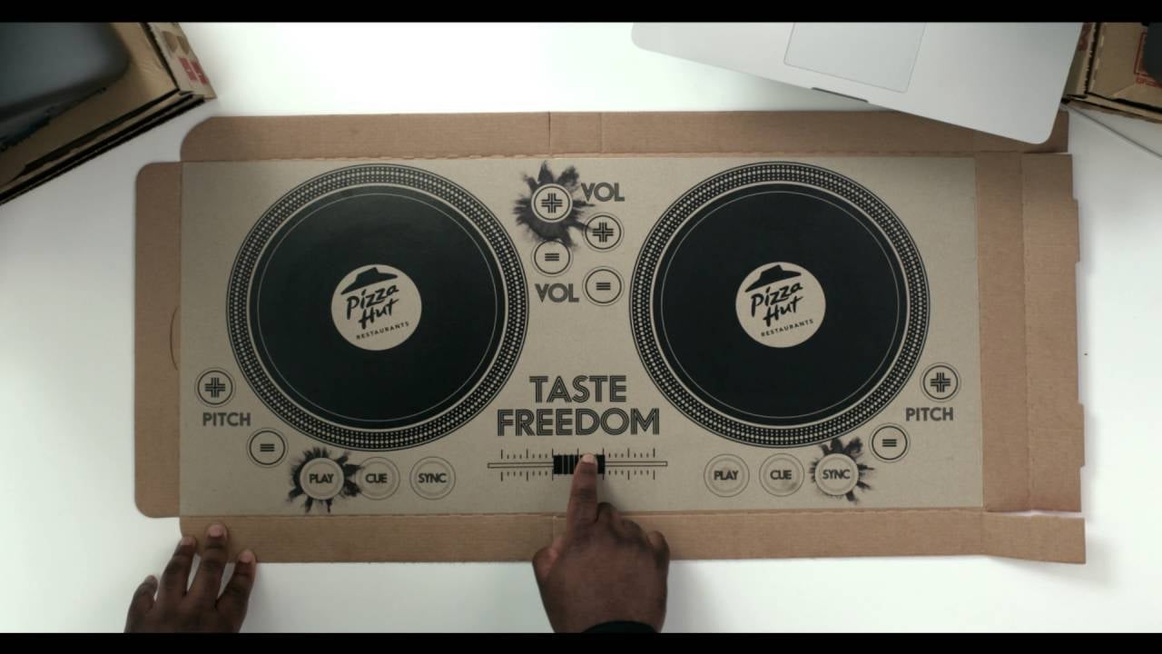 That sad, empty feeling when the last slice of pizza gets eaten might be a little easier to bare now that Pizza Hut in the UK will be packing its pies in special boxes that turn into a pair of playable DJ decks, complete with mixer, letting you follow up dinner with some jams.