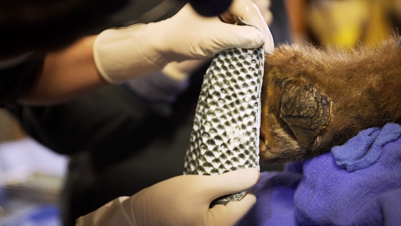 The tilapia wraps, which were made from live fish purchased at a nearby market, last for about 10 days before turning leathery and losing the collagen necessary to help repair skin. Along with the fish bandages, the bears also received acupuncture, chiropractic treatment, and cold laser therapy to help with pain and healing.