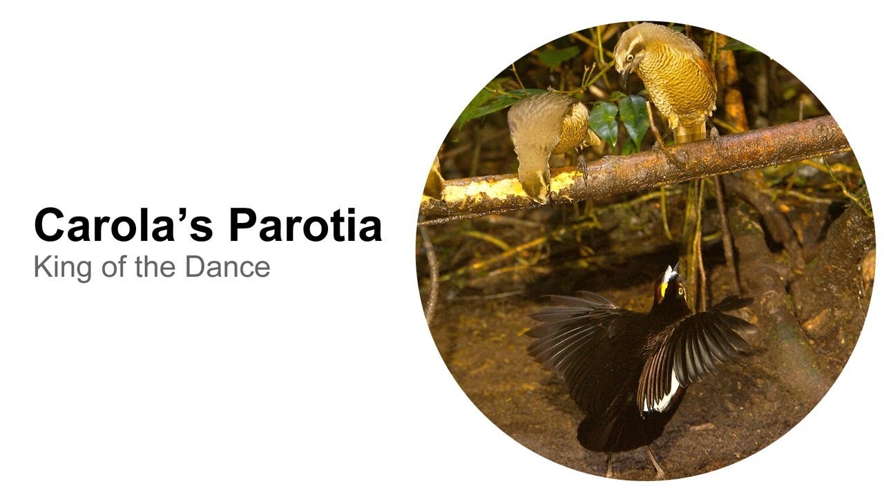 You can also watch a male Carola’s Parotia move from the hop and shake to the ballerina dance without the cutaways or funky dance music in the below clip from Jungles in Paris.
