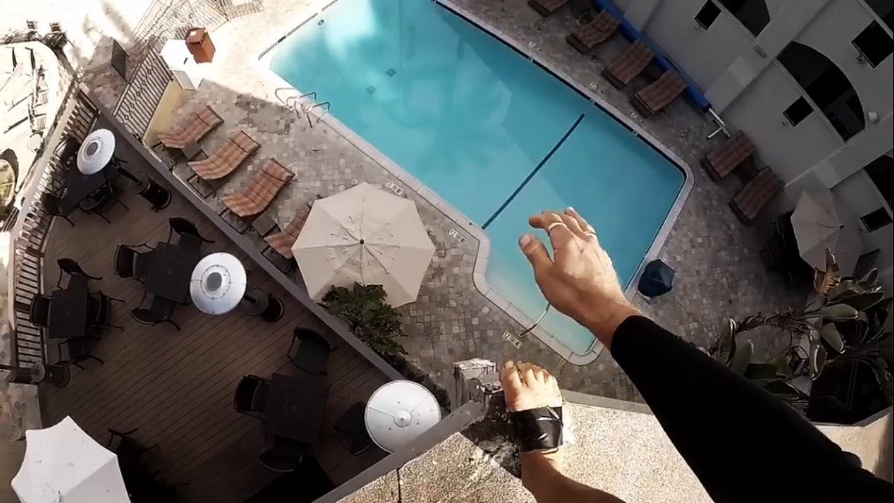 Day or night, off roofs or balconies, into pools or harbors, hell, even after getting arrested for trespassing (as he was no doubt, attempting a jump somewhere), 8booth is still making wild and reckless jumps off buildings and into pools to scare absolutely everyone watching. This time, he fled to Mexico to make two different jumps: a scarily far jump in the daytime and another one at night, which doesn’t quite seem like the smartest thing to do (as if jumping off a building was a smart thing to begin with).