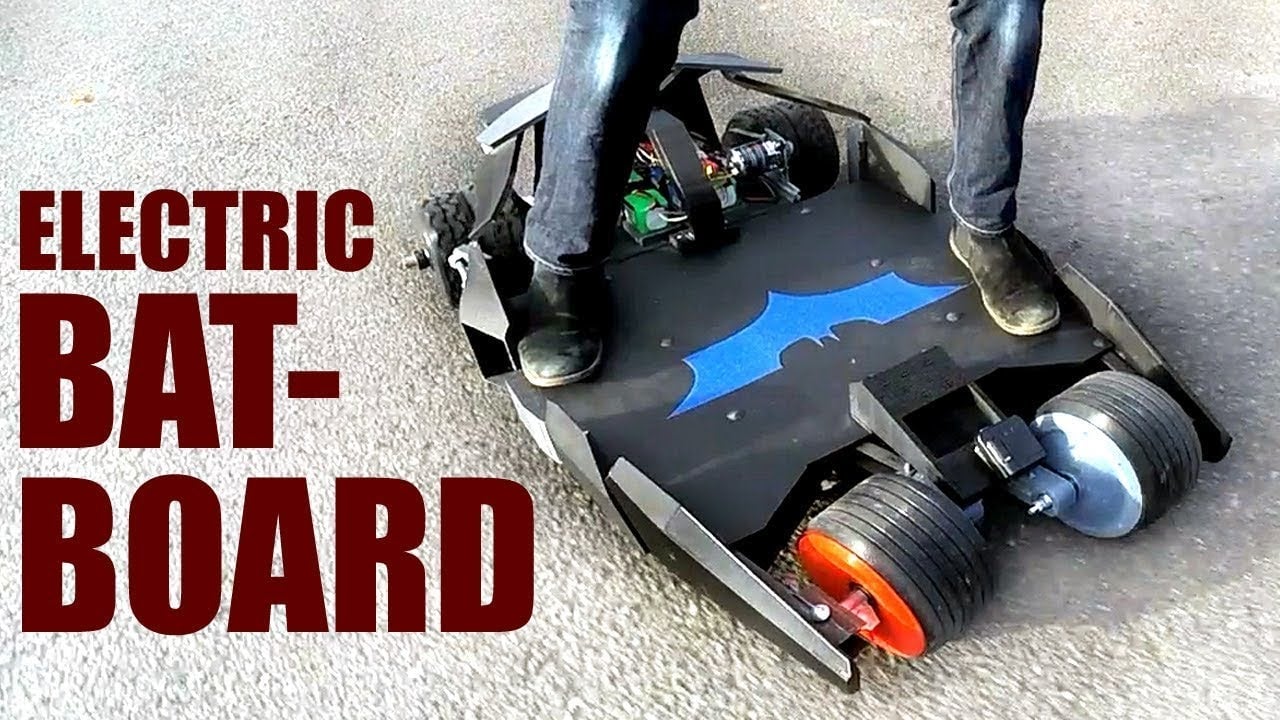 How does Batman stay relatable to the teens in Gotham? He probably rides around on this impressive Batmobile Tumbler electric skateboard that hacker James Bruton built from scratch. It allows the rider to steer by simply leaning their body from side to side, while a handheld remote handles acceleration and braking.