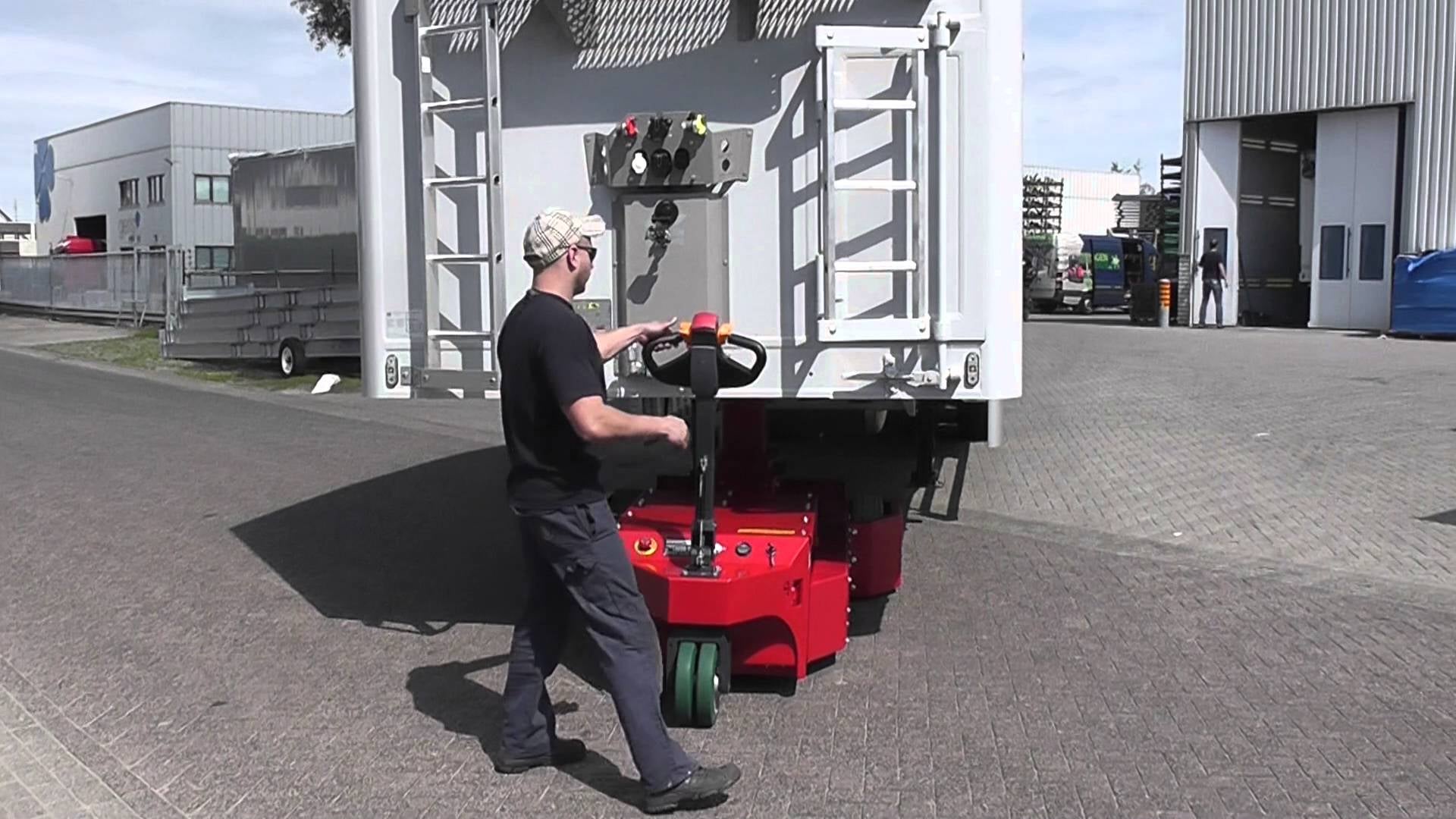 The electric tug also includes safety devices, so it’s easy to steer a 20-ton trailer without the risk of it tipping, and more importantly, so it’s just as easy to stop. It also includes an optional onboard air compressor, which can be used to operate the trailer’s own air brakes for additional stopping power, which is probably a very popular option.