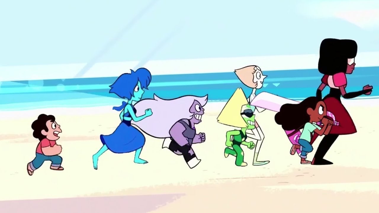 So The Roundtable made a new one. Created for MomoCon recently, this sequence takes the “We are the Crystal Gems” short and expands it, editing in visuals and highlights to bring in the entire extended gem family, including Lars, the off-color gems, Amethyst, Lapis, and even more. Most impressive, the edit includes a new version of the scene where the core cast runs across the beach, cut to add in more core members of the Gem team.