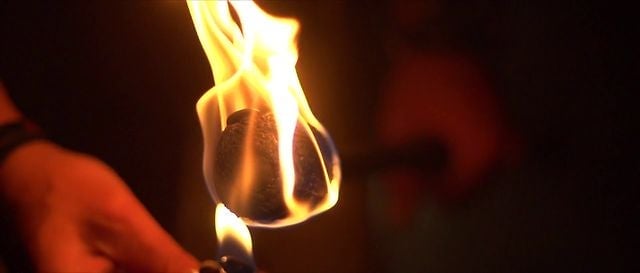 This is a man breathing fire in slow motion
