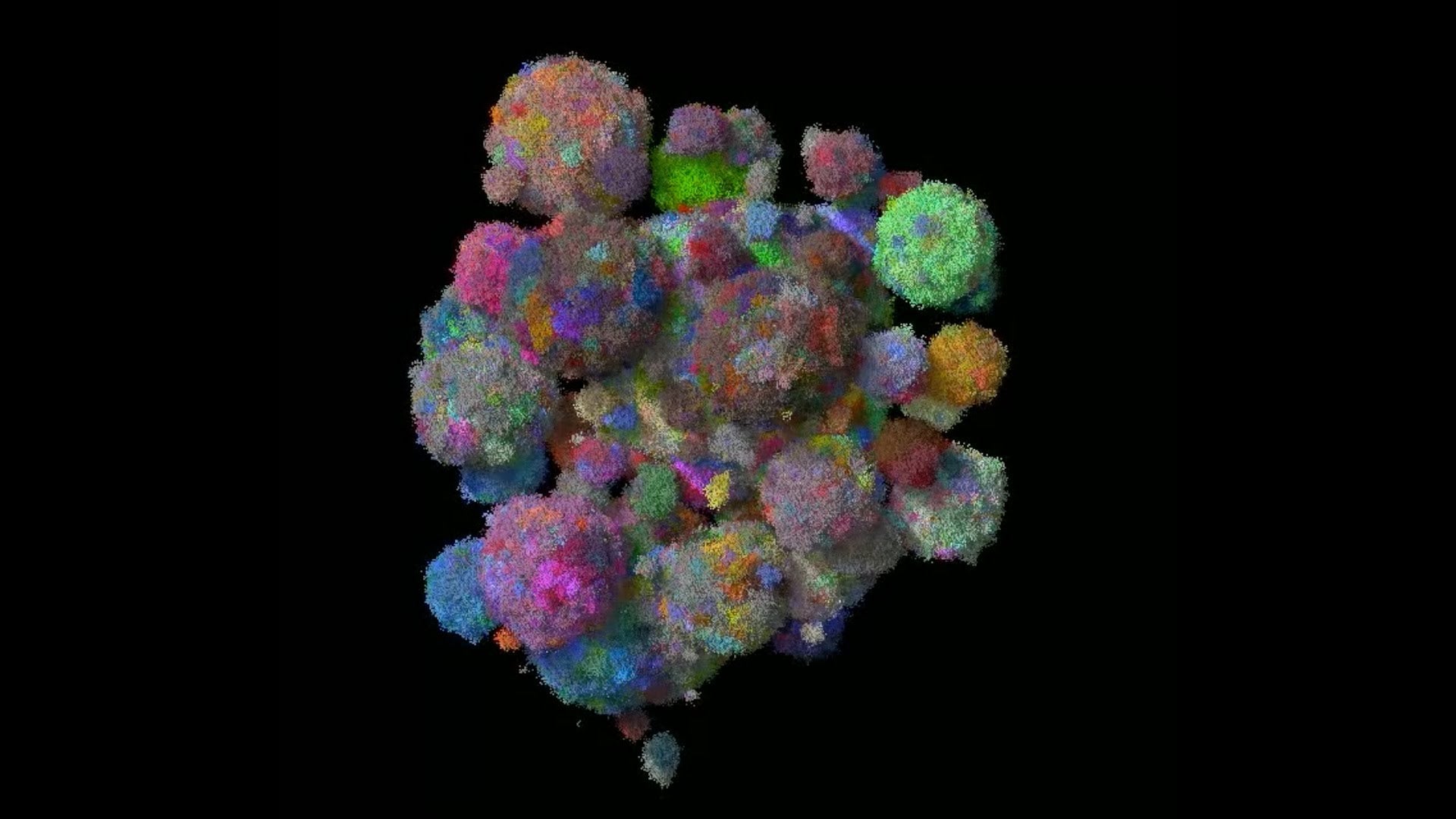 Using mathematical algorithms, a team of researchers has developed a new, 3D simulation depicting how a tumor grows from a handful of rogue cell types (represented by different colors) into a malignant mass comprised of millions of cancerous mutants. The model, published this week in Nature, is reinforcing something that laboratory studies have also shown: Tiny movements of cells within a tumor can cause the mass to quickly expand, or allow it to rebound after chemotherapy.