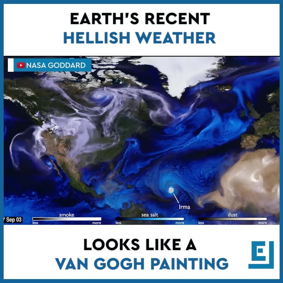 You’d be forgiven for not wanting to relive it, gentle reader. But if you can handle it, this NASA animation is worth your while. Using satellite data and math models run using powerful computers, NASA scientists have made a stunning visual testament to three months of weather on Earth that looks like van Gogh’s “Starry Night.”