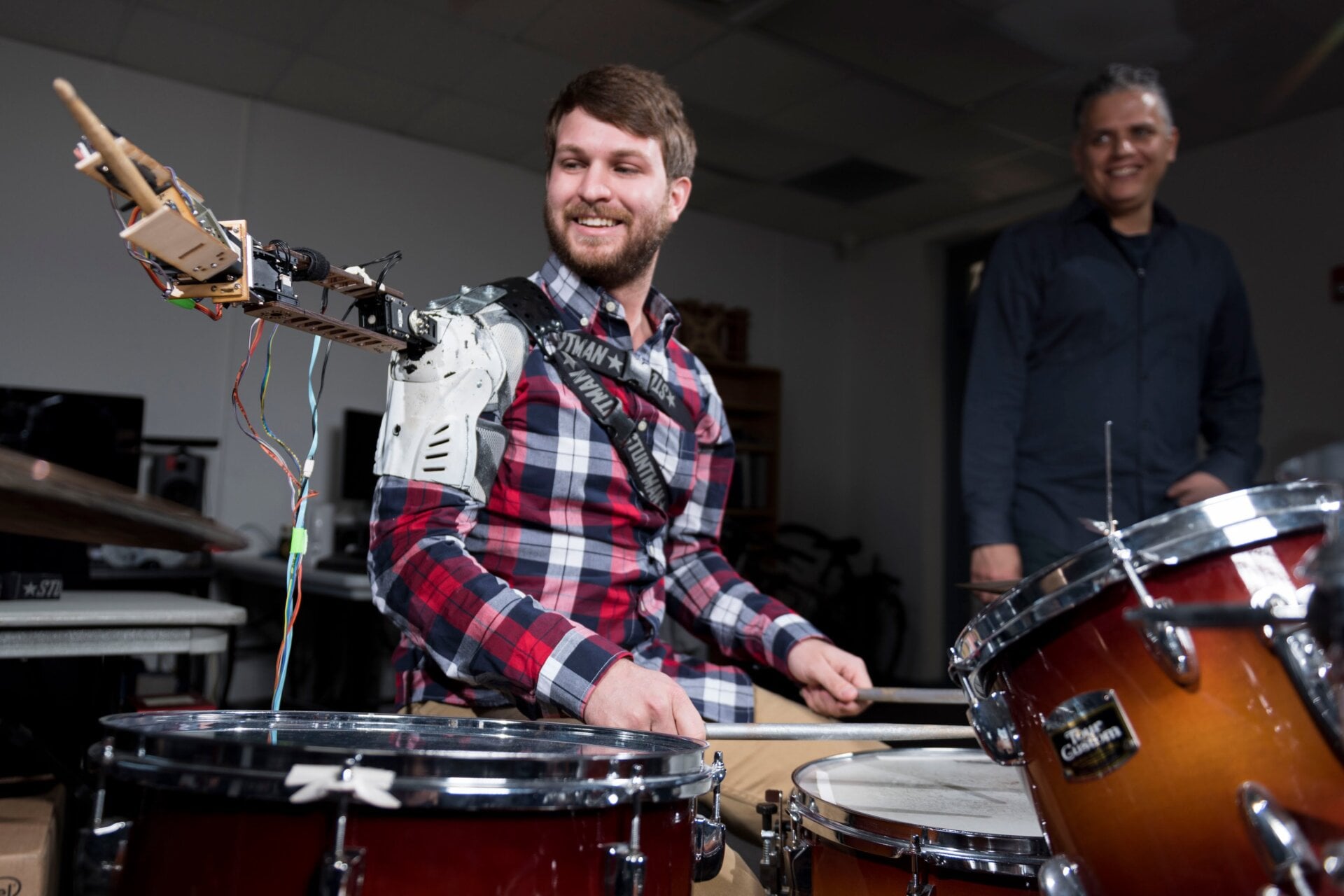 “Imagine if doctors could use a third arm to bring them tools, supplies or even participate in surgeries. Technicians could use an extra hand to help with repairs and experiments,” he said. “Music is based on very timely, precise movements. It’s the perfect medium to try this concept of human augmentation and a third arm.”