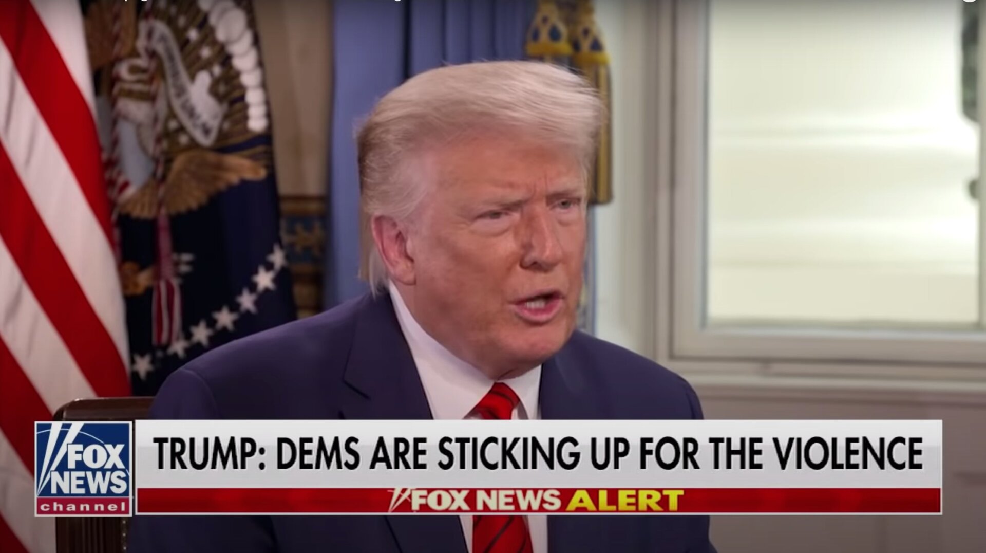 The interview—heavily coached by Ingraham—hammered on law and order, a topic which Trump is largely staking his campaign on (“every time I put ‘law and order’ up on social media, it gets such an incredible, positive response,” he gloated.) The conversation revolved mainly around protests in Portland, Oregon, where a member of the right-wing group Patriot Prayer, whose leader was charged with rioting at a protest last year, was killed on Saturday. “Portland’s been burning for many years, for decades, it’s been burning,” Trump said, right out the gate. This is not even figuratively accurate. He added that protesters are being paid for by “stupid foolish people that made a lot of money,” an accusation he’s leveled at his detractors for years.