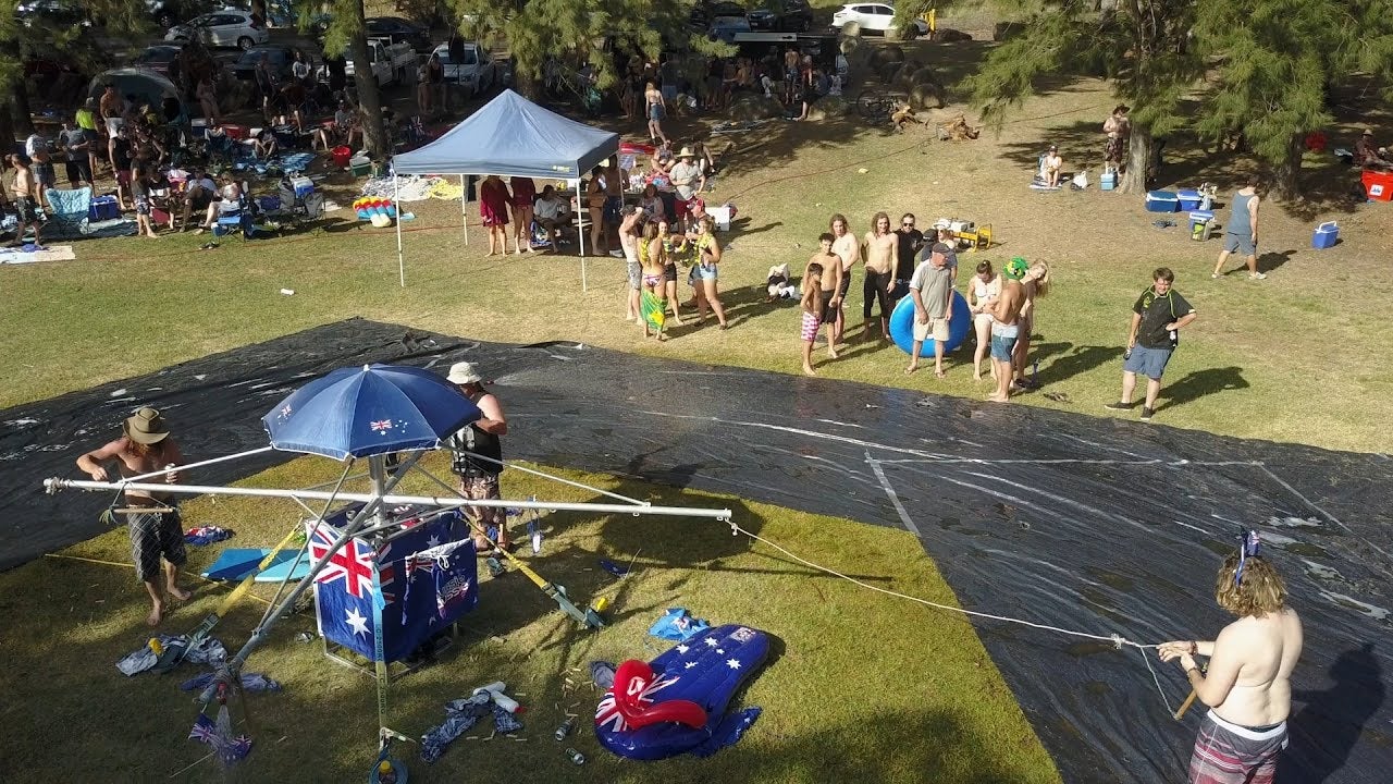 In an effort to celebrate Australia Day—a holiday in which the nation apparently likes to risk life and limb for a little fun—a bunch of Aussies realized that the ride on a Slip ‘N Slide is always way too short. So they built an infinite version where you can keep hurtling around for as long as you can hold on.