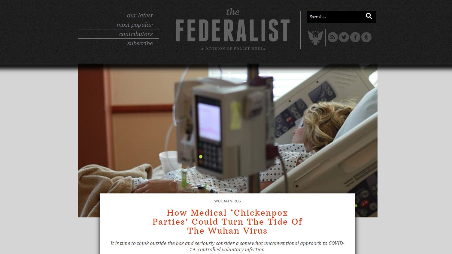 For those who have mercifully avoided reading its content, the Federalist is a mysteriously funded, sycophantic pro-Donald Trump site with one particular specialty: articles in which the authors contort themselves into a brain pretzel to lecture an imaginary audience of liberals about how the world’s dumbest ideas are actually very logical and smart. (Essentially, think of it as if Trump’s Twitter feed found half a thesaurus in the gutter.) Lately, the publication has focused on justifying the White House’s push to re-open the economy with a slew of articles arguing the pandemic is fueled by media hysteria, that the economic impact of shutdowns will be worse than a surge in covid-19 cases, or that projections of how fast the disease could spread are based on bogus data.