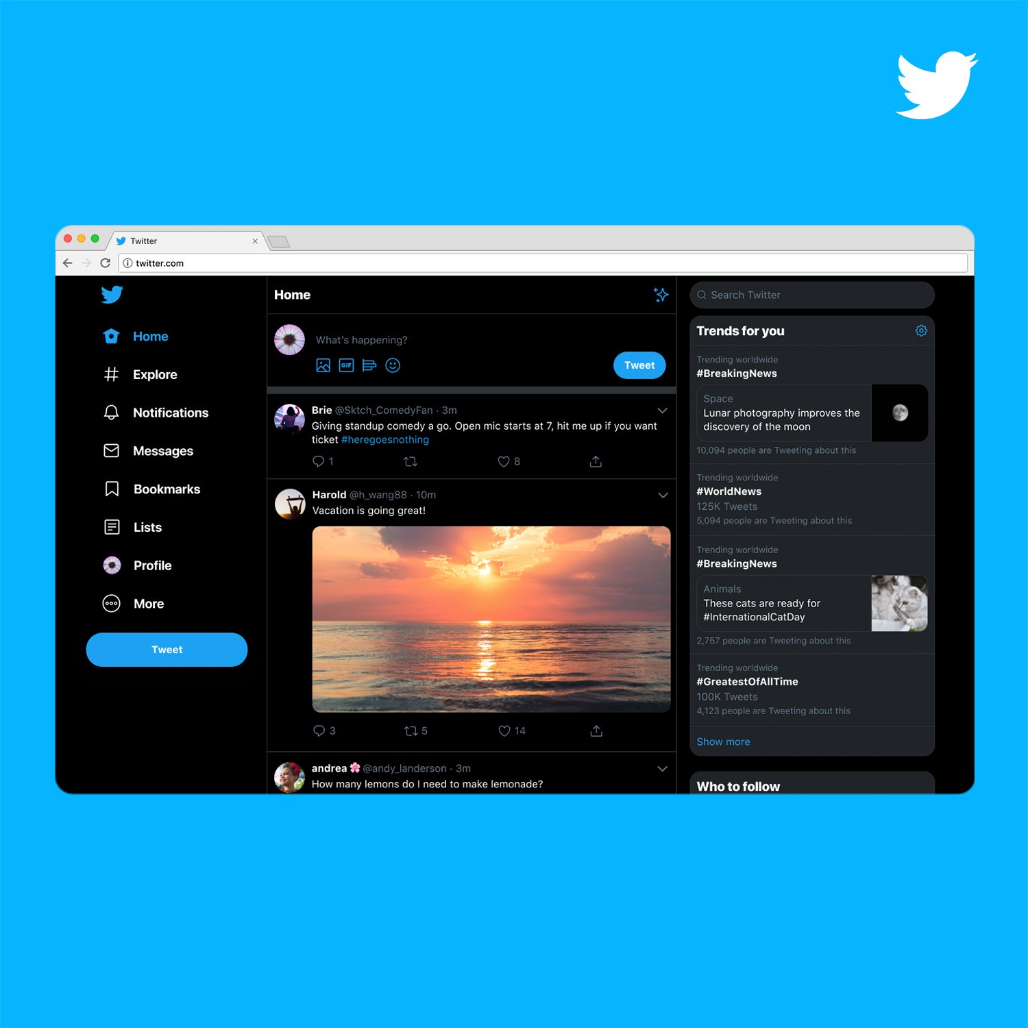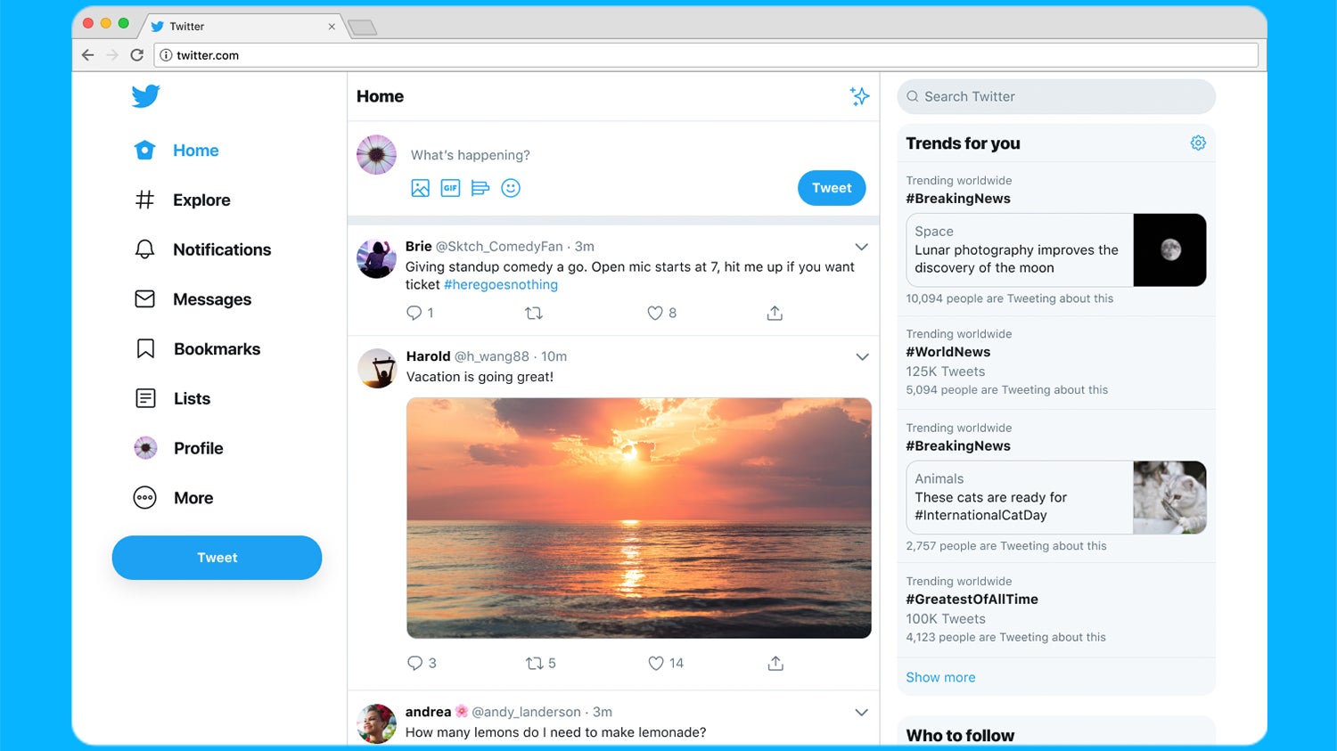 The new layout puts emphasis on trending hashtags and search, bookmarks, and lists, and an admittedly sleeker design. Mike Kruzeniski, senior director of product design at Twitter, told Wired that the company is “trying to find the right places to be bold again, but it’s a resetting of that foundation. Starting with the best stuff and building from there.”