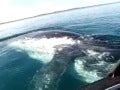 Two whales swim alarmingly close to a canoe, and passenger promptly/understandably loses her shit