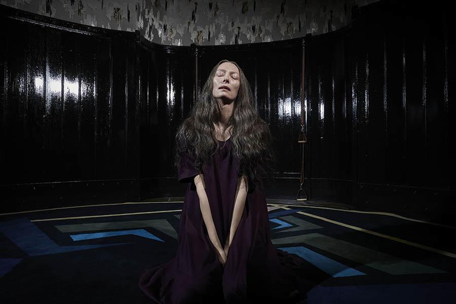Tilda Swinton also genuflects in a new Suspiria photo from Fandango. Big day for horror movie genuflection, apparently.