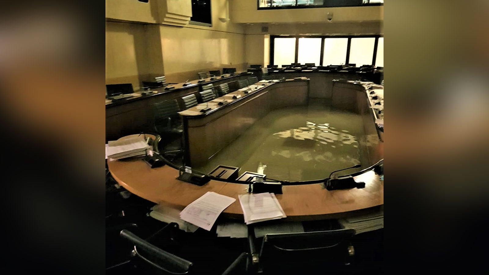 Andrea Zanoni, a council member and chair of the environment committee, posted photos of the flooded chambers on Wednesday night. It’s the first time the council chambers have ever flooded. The building sits right on Venice’s Grand Canal, and its flood protections appear to have failed.