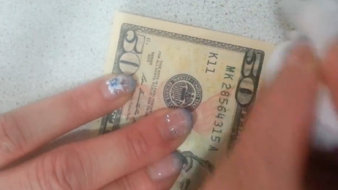But oh the tricks counterfeiters use. See how the 50 gets rubbed off in the video below.