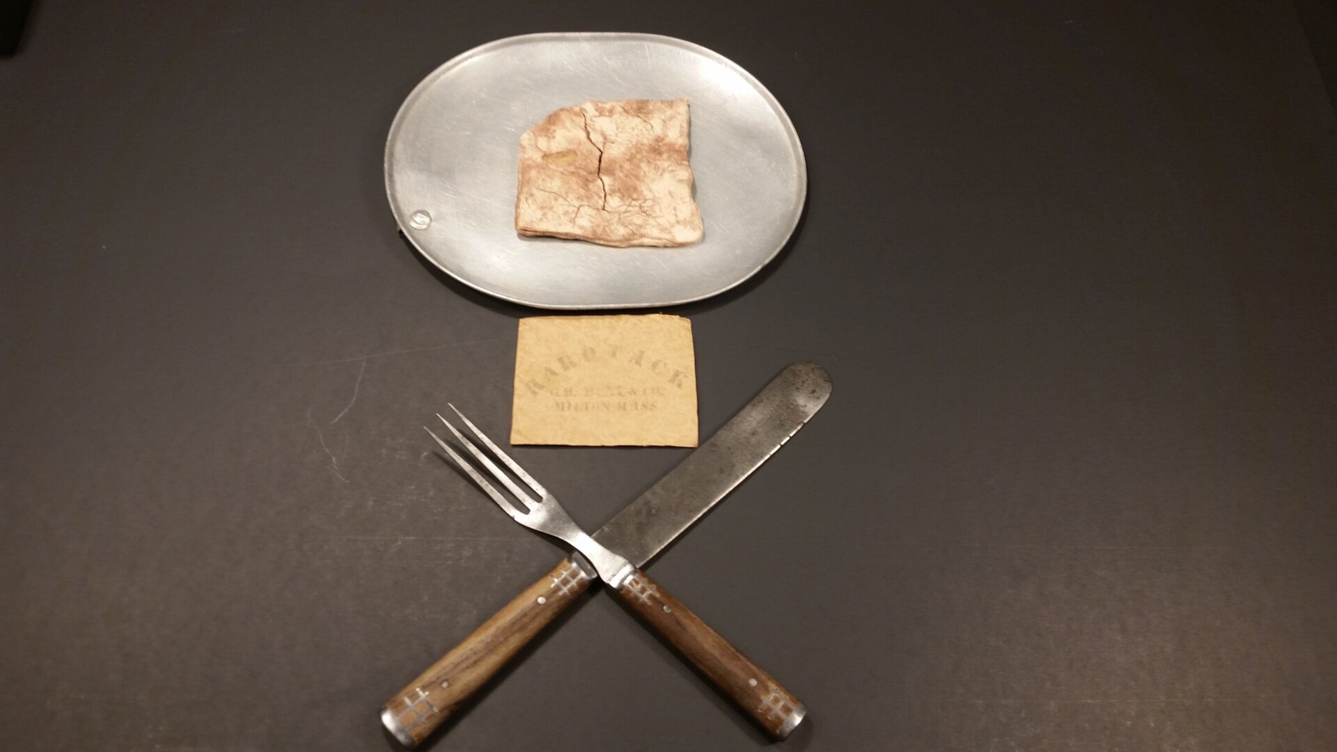 At first he describes the taste as similar to a library book or mothball. I wouldn’t put it past him to have firsthand experience eating either. The hardtack gets tossed into some water to soften up, and takes on a eraser-like taste, similar to car tires. Who could resist flavor descriptions like that? Finally, Steve tosses it into some coffee to get the authentic infantry experience, minus the bullet wounds, gangrene, amputations etc.