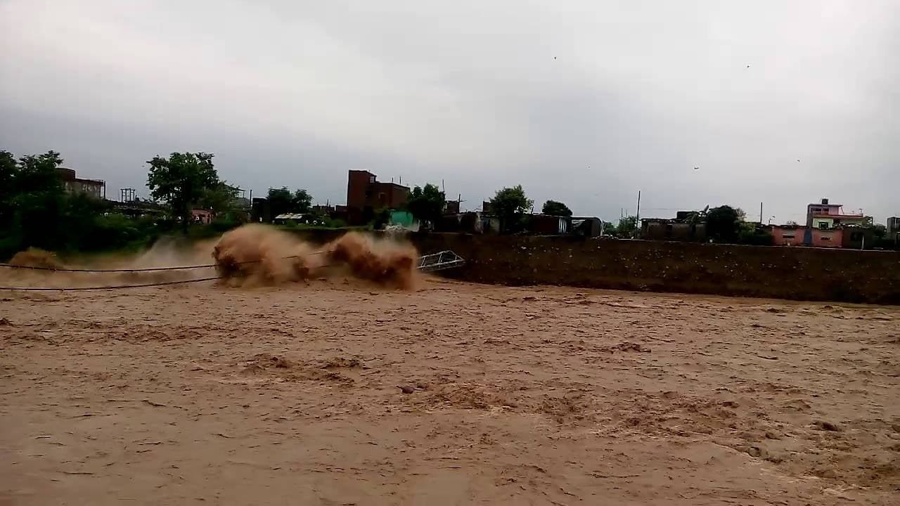 This suspension footbridge in Butwal was among the longest in the country, according to Rishabh Shrestha who shot the video. Rushing waters eroded the base of the bridge causing it to collapse into the Tinau. The Himalayan Times report that police were attempting to rescue people on the riverbank just moments before the bridge fell.