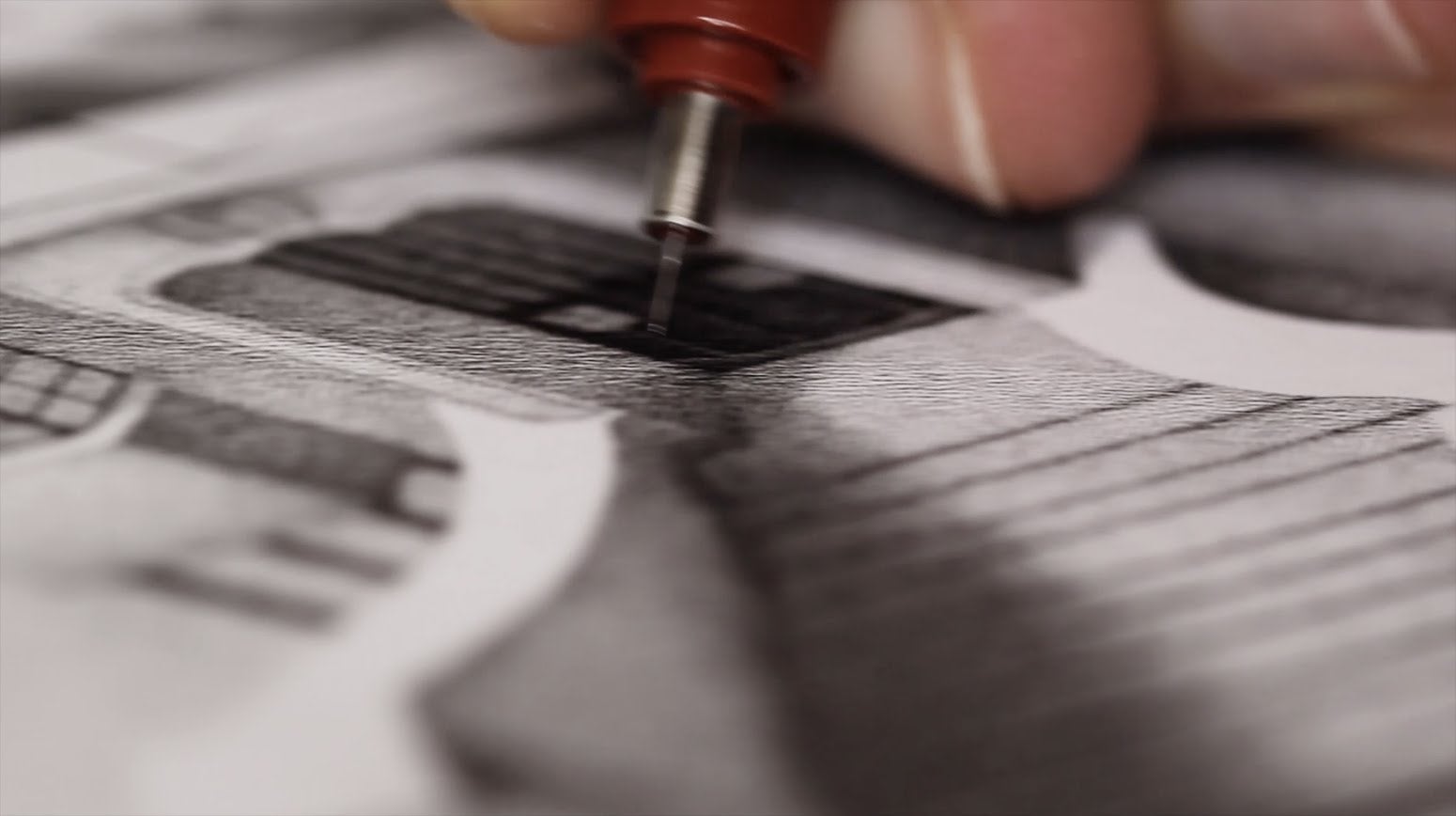 Artists David Bayo’s skills are all the more impressive when you lean it to get a closer look at his work. Instead of carefully applied brush strokes, he creates lifelike portraits by laying down dots, millions of them, in a painstaking process that required over 90 hours of work for this simple black and white piece.