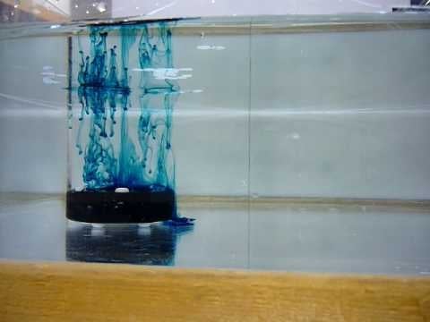 The first video shows a column of dye forming in a spinning vessel. This second video gives you multiple looks at how a Taylor column forces dye to move around it, even though it doesn’t have any solid barrier. You can also see how dye reacts when the container is not being spun.