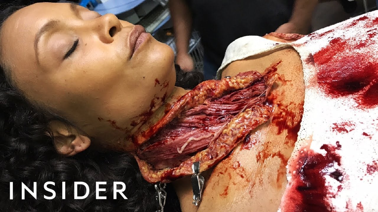 The second, and altogether more grisly prop were the wounds on Maeve’s neck and arms from when Delos captured her and surgically attempted to uncover just how she could control other hosts in the parks. Naturally, the team looked to real life surgeries to make the grisly wounds look all the more convincing on screen. It’s pretty cool to see that these moments were achieved with minimal VFX and instead with some old school practicality… and, err, copious amounts of fake blood.