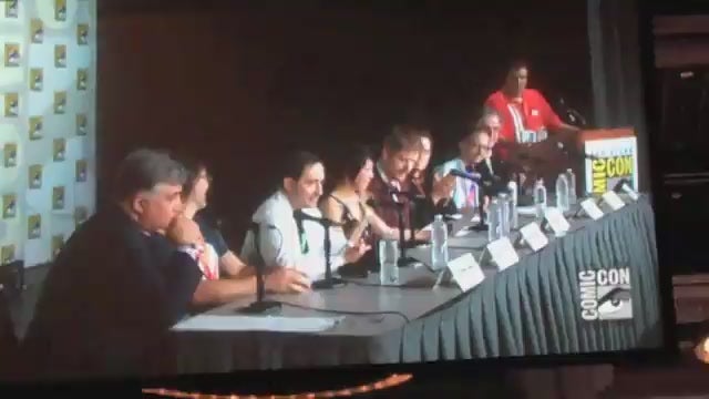 Futurama producers and cast members came to San Diego Comic-Con’s Ballroom 20 ready to play. The panel got going with a lively reading of the upcoming episodes from the likes of Amy, Bender, and the Robot Mafia’s Donbot, which you can see up top.