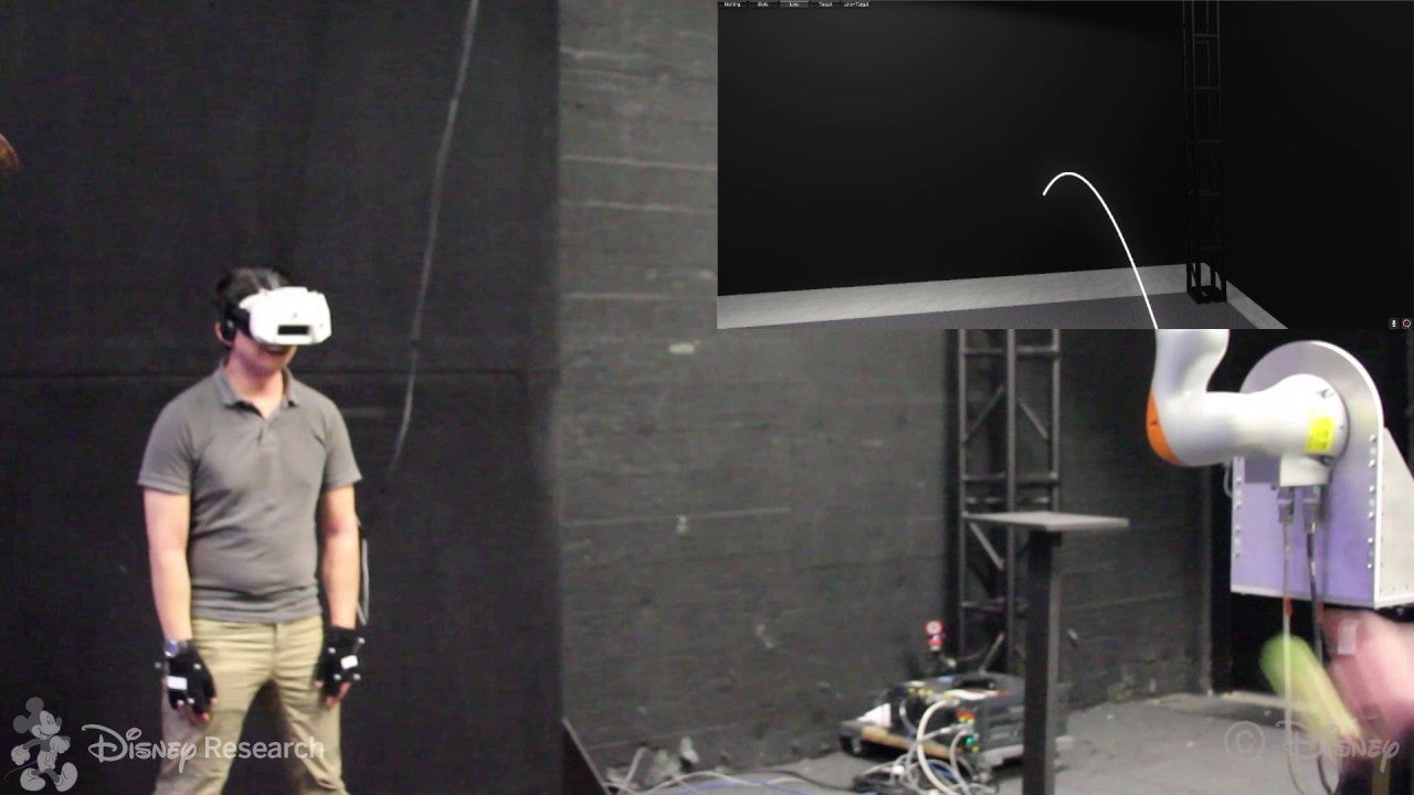 When you strap on all of the gear required for a modern, immersive, virtual reality experience, you’re all but completely blind to the real world. But interacting with real world objects can often enhance a virtual experience, so Disney’s researchers came up with a way to let users catch a real ball without leaving a VR world.