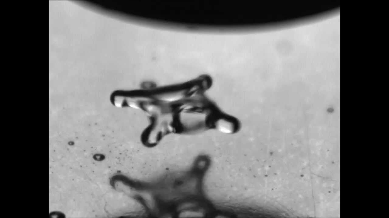 Then they start to screw with the droplet. First they introduce different frequencies to push it into different shapes. Then they mess with its chemistry, mixing water and propolyne glycol. And finally, they just increase the frequency until it can’t keep up and breaks apart.