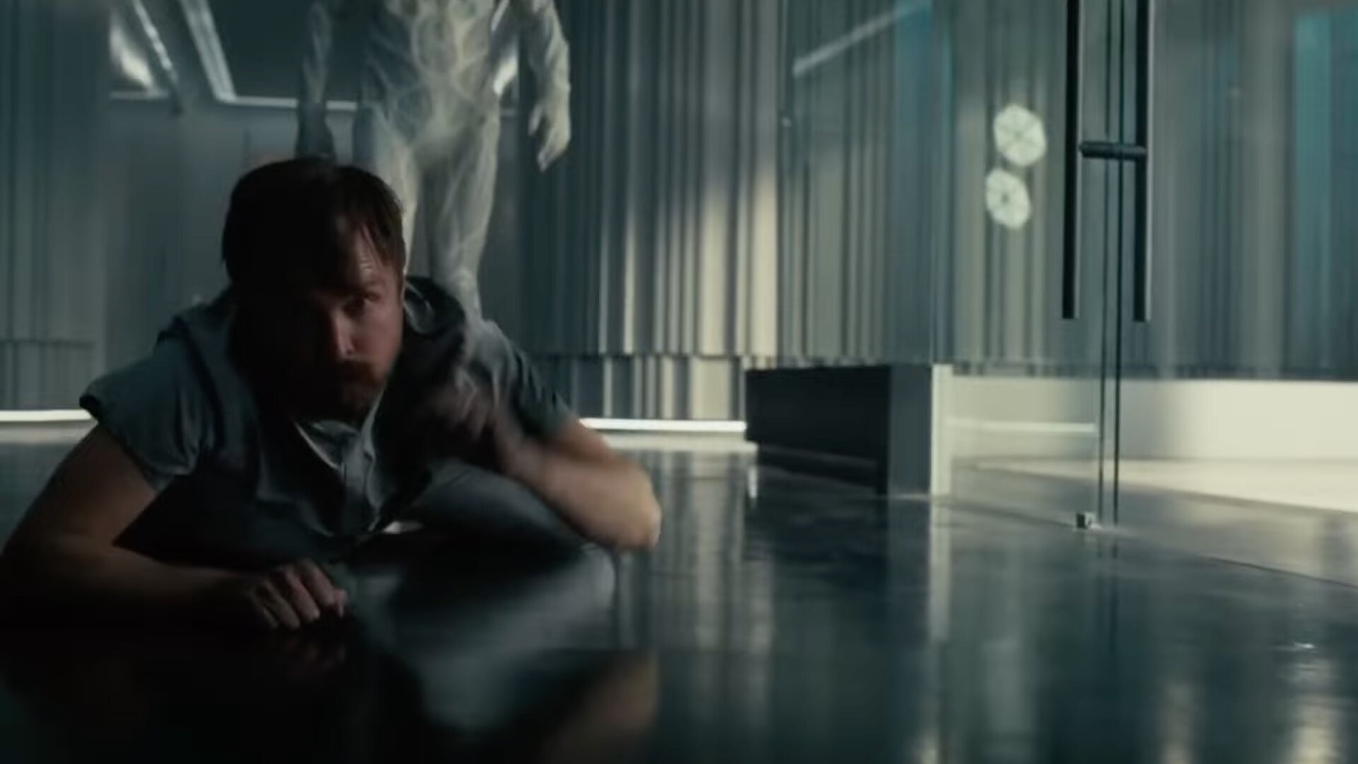 It’s the first of many entertaining and unnerving moments in “Fidelity” of Caleb getting forcibly reminded he’s no longer human. But luckily, an especially degraded version of Caleb gives our Caleb a clue about needing more time, so he checks the hourglass and finds a small cartridge in it, which knocks him out so he appears to be dead. One of Hale’s Drone Hosts hits the termination button, causing jets of fire to erupt from the ceiling. The only escape is through a grate on the floor… which mysteriously has a small arrow etched into it, indicating how the grate needs to be opened.