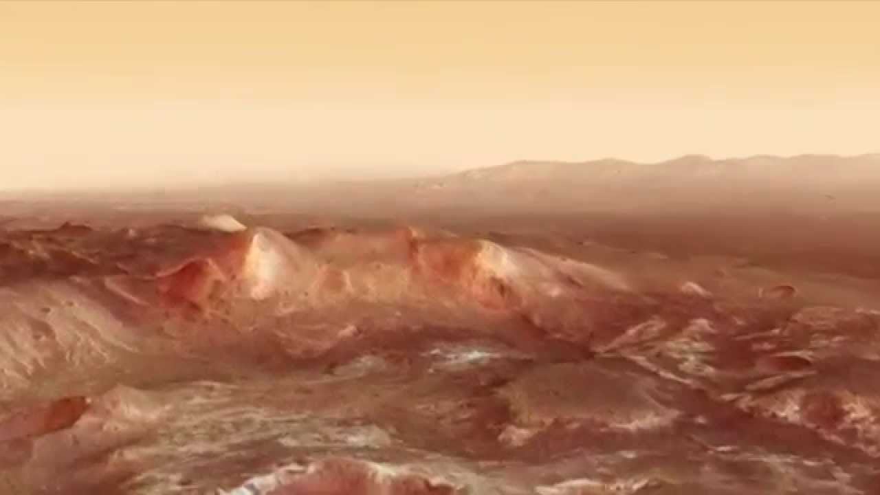 The ESA put together this rendered flyover video of Mars (from images taken from the Mars Express) and we can see the craters and cliffs and canyons that pockmark the red planet as if we we were actually flying by and poking our head out the window. It’s all the same drab and dusty color but it also looks phenomenal.