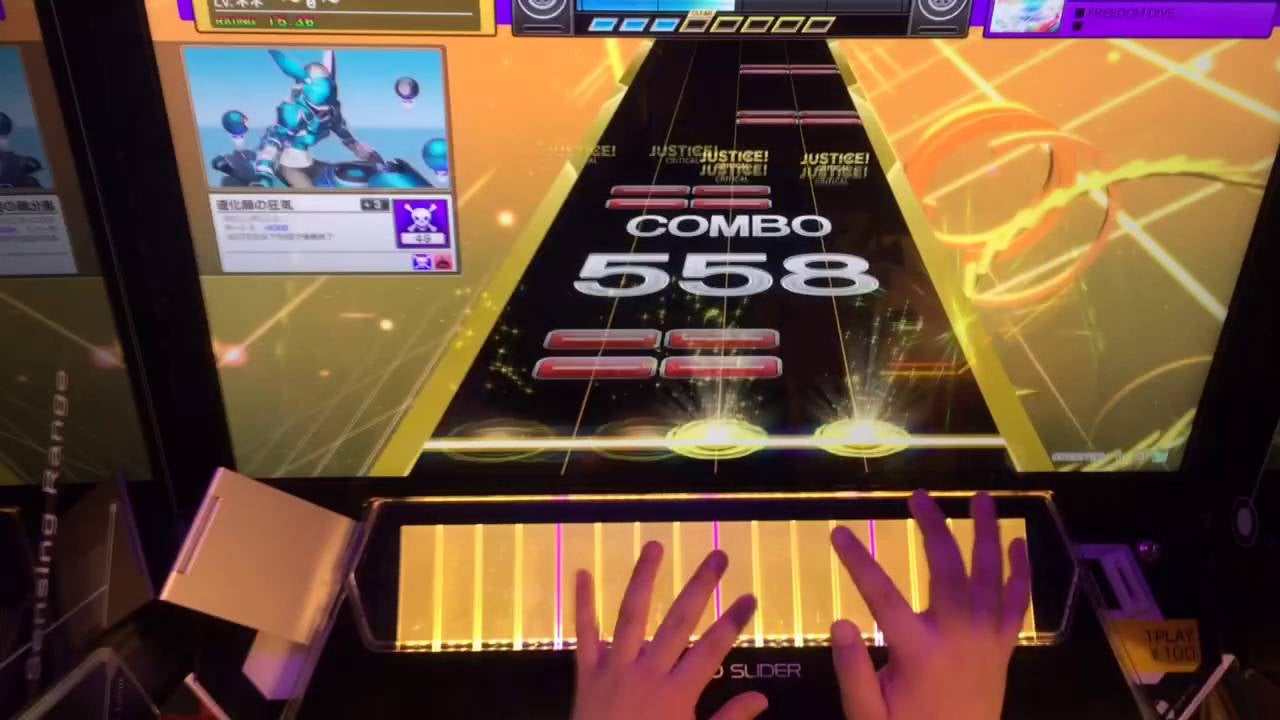 For what it’s worth, the game being depicted is called Chunithm—it’s a rhythm game developed by Sega for arcades. On the surface it looks like some sort of keyboard Guitar Hero, but the mechanics are much less forgiving (turn to our esteemed colleagues at Kotaku for an explanation of how it works.) Even still, ~ё~ makes it look like a breeze, hitting every single note on this track for a final combo score of 2222—which the game calls “All Justice” for some reason. Personally, I’m a bit dizzy just trying to follow the guy’s hands.