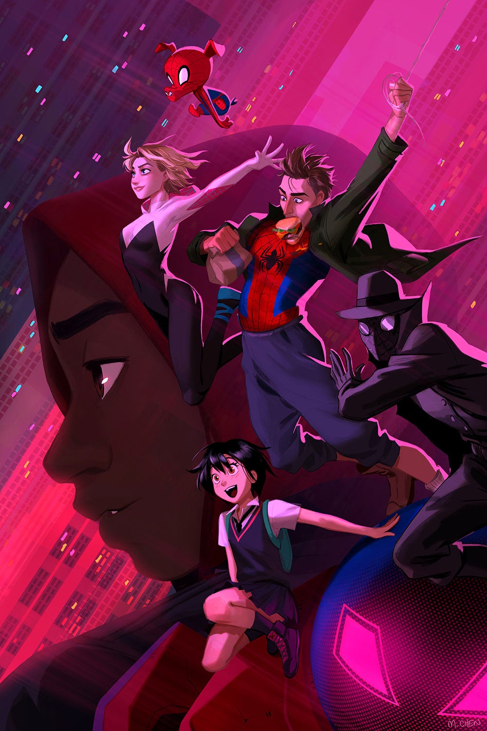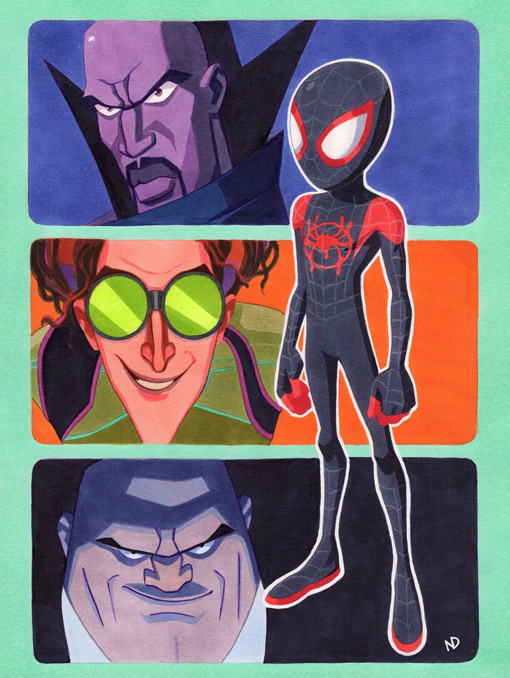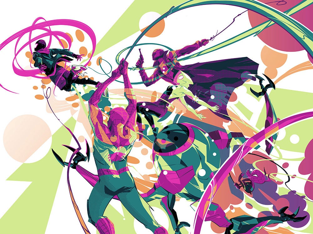 “What’s Up Danger? The Into the Spider-Verse Tribute Show” kicks off on June 29 at Gallery Nucleus in Alhambra, CA. Nearly two dozen artists, many of whom worked on the film itself, have contributed new prints and originals themed around the amazing animated Spider-Man film, and we’re excited to show you just a small glimpse.