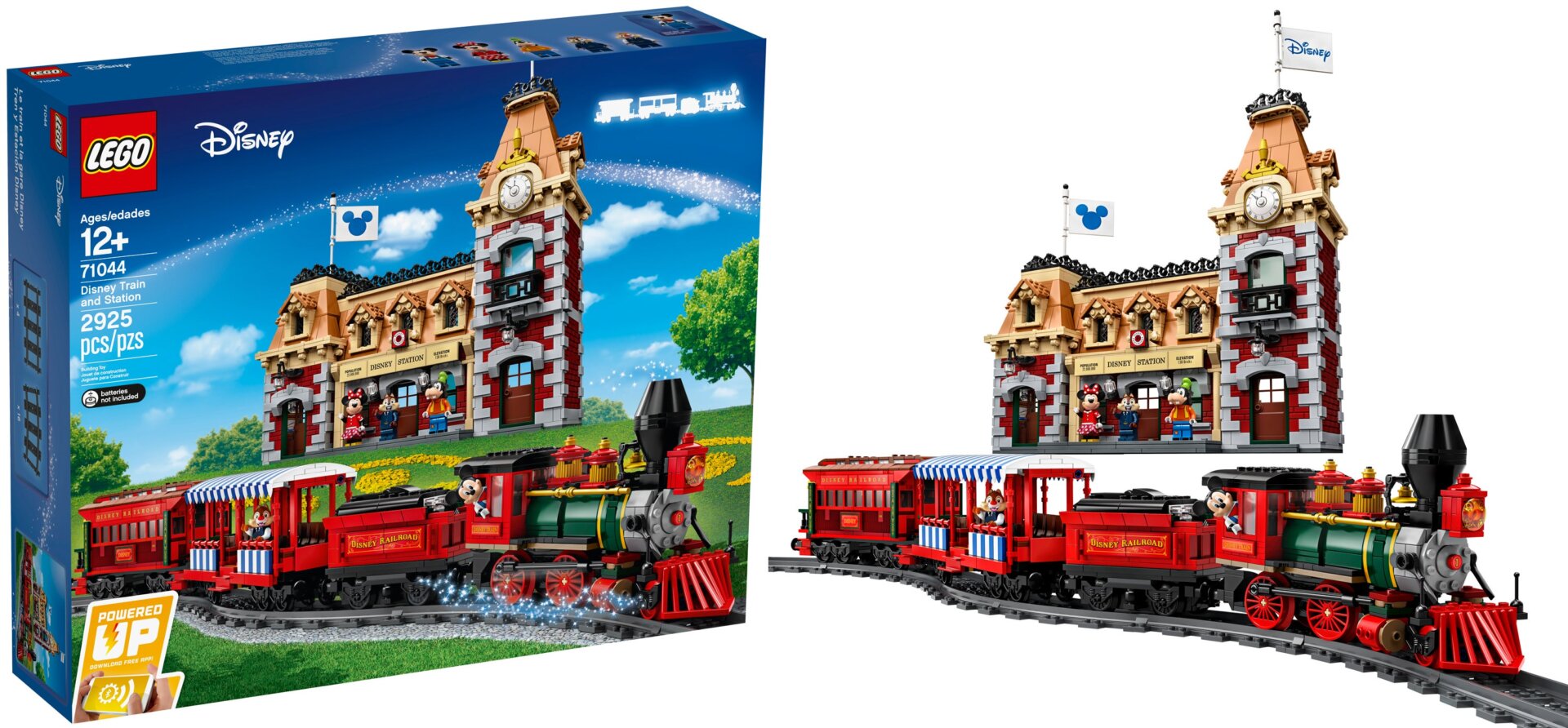 With Star Wars: Galaxy’s Edge open at Disneyland and soon to open at Walt Disney World, there’s renewed interest in the theme parks—which Lego is capitalizing with a new set honoring one of the original Walt-approved attractions. The 2,925-piece Disney Train and Station set, available September 1 for $330, includes a fully motorized replica of the park’s steam locomotive with a tender (hiding the electric motor), a pair of passenger cars, and a short loop of track. It also comes with five minifigures, but instead of a miniature Walt Disney you get Mickey, Minnie, Goofy, Chip, and Dale, who are all dressed for working the rails.