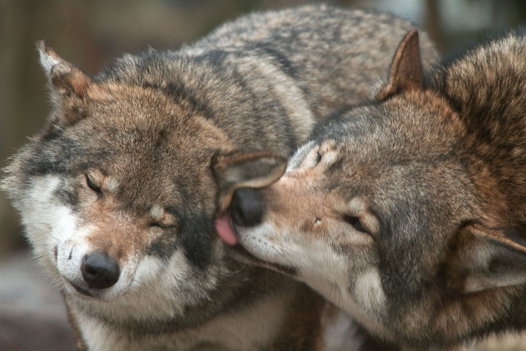 Like dogs, wolves greet each other with vigorous face licking (Credit: Sander van der Wel CC A-SA 2.0)