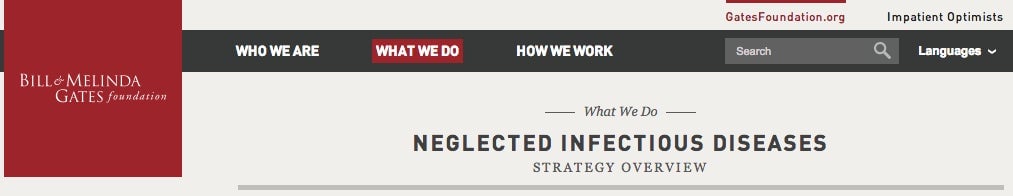 As noted, Bill and Melinda Gates are active in this field as well. Through their funding and advocacy efforts, they want to “reduce the burden of neglected infectious diseases on the world’s poorest people through targeted and effective control, elimination, and eradication efforts.” To that end, The Gates Foundation supports efforts to develop new ways to attack multiple infectious diseases simultaneously, and in a coordinated and integrated fashion. They’ve set aside three main areas of focus: