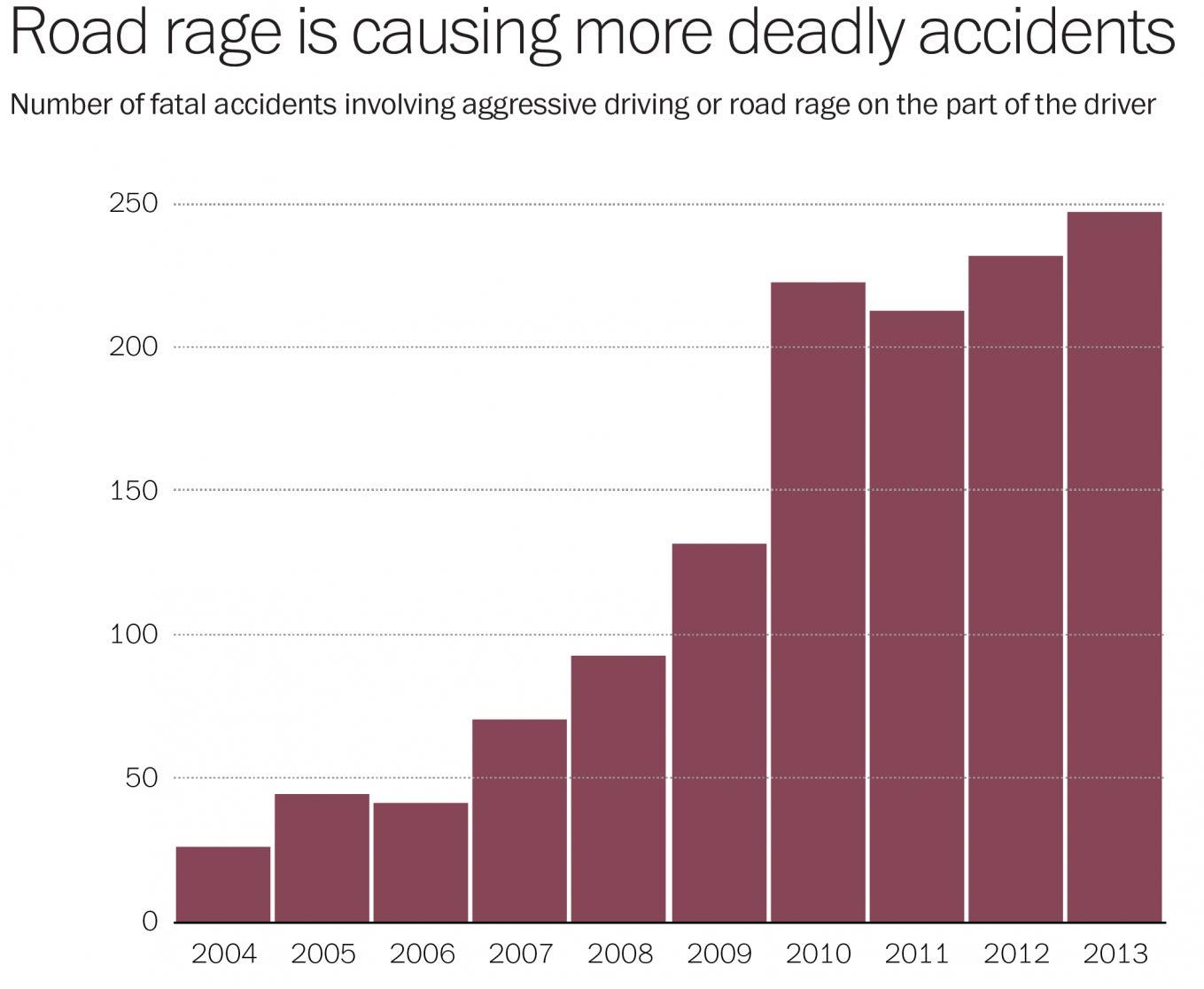 Statistics compiled by the U.S. National Highway Traffic Safety Administration show that 66% of all traffic fatalities are caused by aggressive driving, and that males under the age of 19 are the most likely to exhibit road rage.