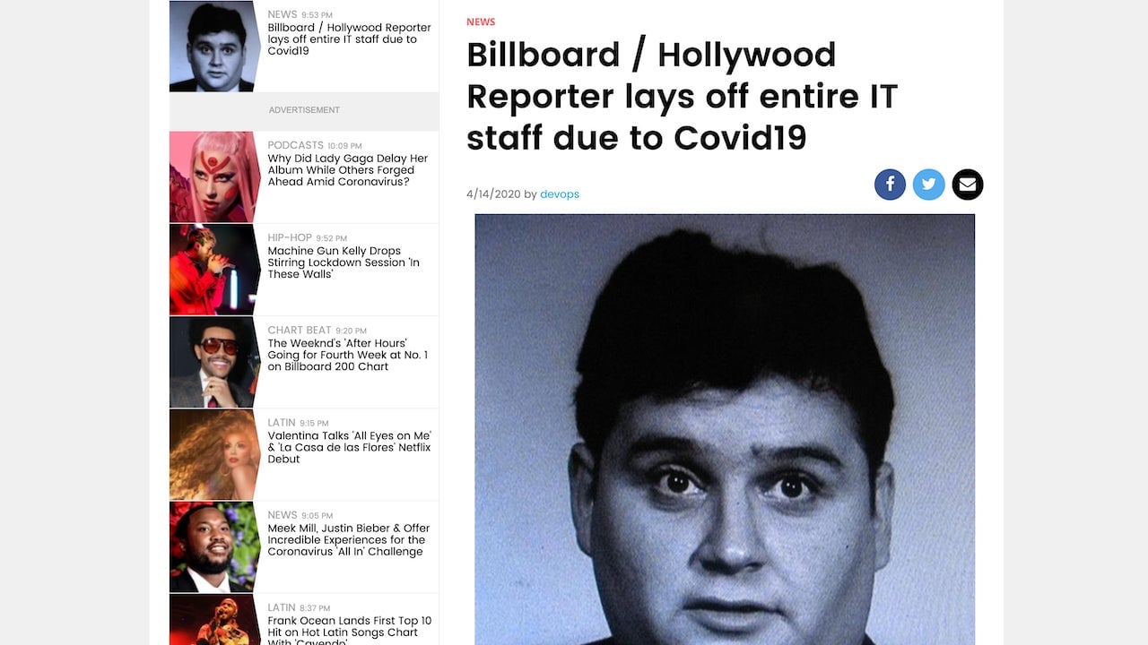 “In the wake of Covid19 pandemic, Valence Media has decided to lay off their entire web IT staff. Effective today,” the Billboard website read in a post credited to “devops.”