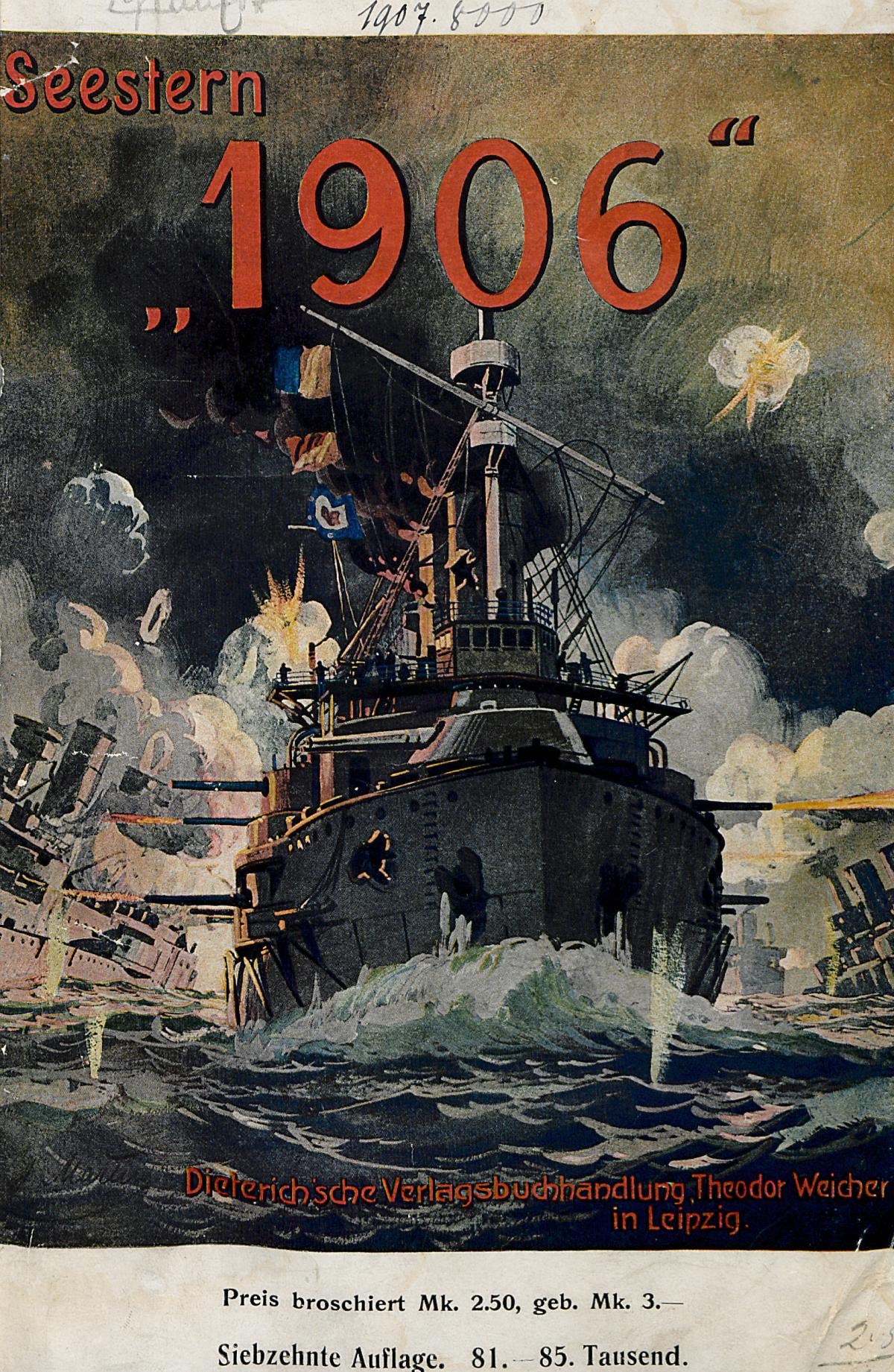 In 1906, newspaper editor and naval writer F. H. Grautoff, writing under the pseudonym, Seestern, penned the novel Der Zusammenbruch der alten Welt (translated to English as The Collapse of the Old Word, and later re-titled Armageddon 190-). In his story he wrote: