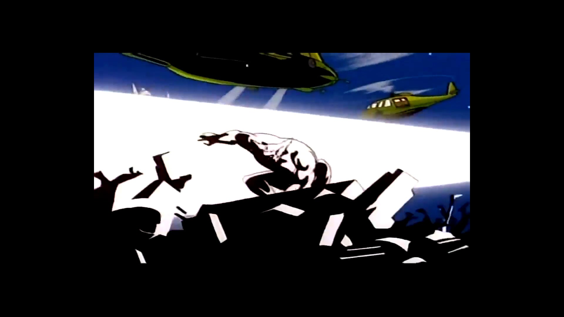 The ‘97 titles do cut some brief action moments from the original opening, in order to accomodate new character titles for Morph and Bishop (and a sequence of Morph being haunted by the laughing spectre of Mr. Sinister, who brainwashed him into villainy after his seeming “death” in X-Men: The Animated Series’ pilot episodes). But the scenes it does keep here, like Beast being targeted by swirling helicopters, are very faithful, give or take some shading techiques.