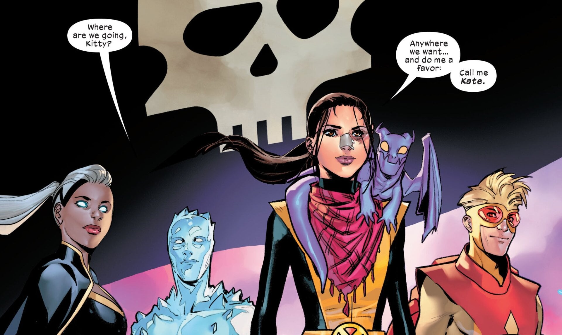It’s a scenario that is not only comical to pull with Kitty of all mutants, but one that imminently sends your head spinning with a zillion questions. Shouldn’t Krakoan gates accept all mutants? Why not Kitty? What does it mean for her mutanthood? What is Krakoan society’s response to those they’ve loved as one of their own for years being rejected by their new home? Are there more like her? How can Krakoa stand for all mutantkind if it seals itself off from some people? Why did no one attempt to let Kitty pass through with them, an apparent process the gates can use to allow non-mutants to travel with an accepted mutant to Krakoa’s shores?